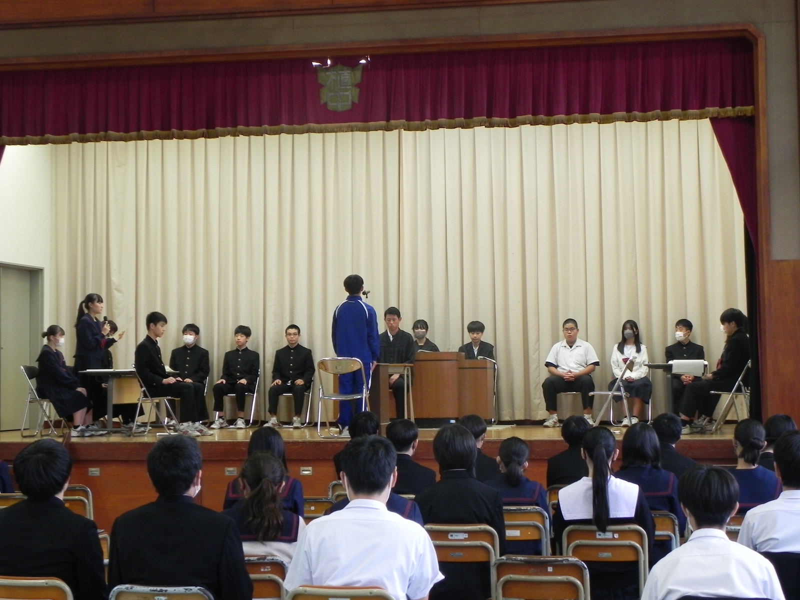 生徒を代表して、2つの班が話合いでまとまった結論を発表しました。