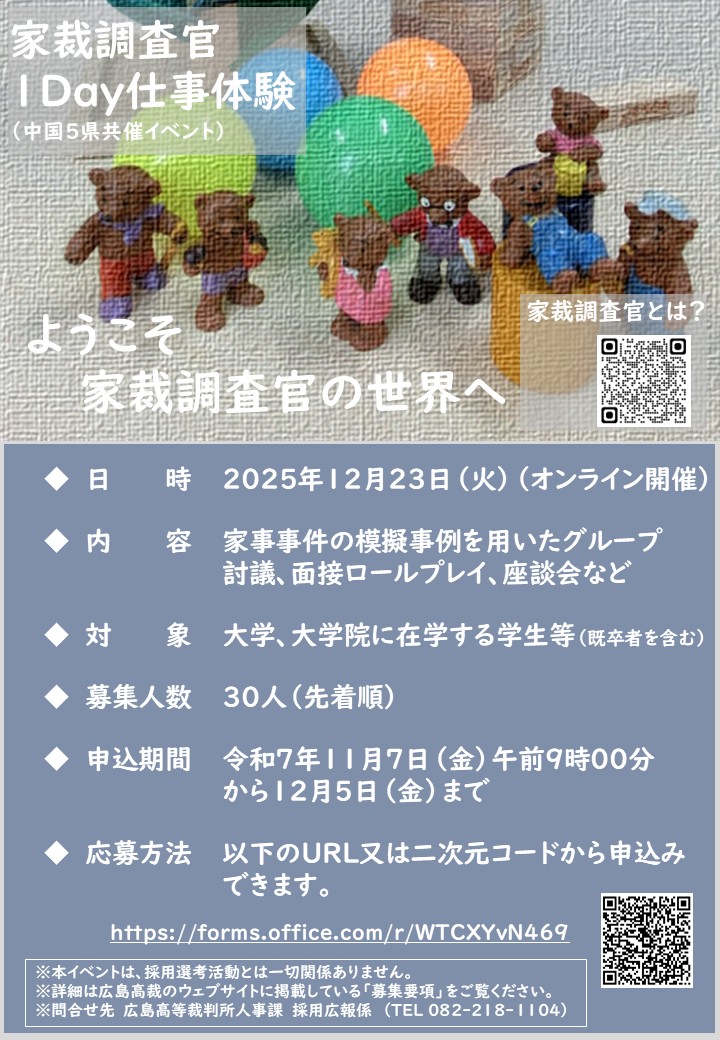 2025年度家庭裁判所調査官の仕事体験イベントの予定日が決まりました。
