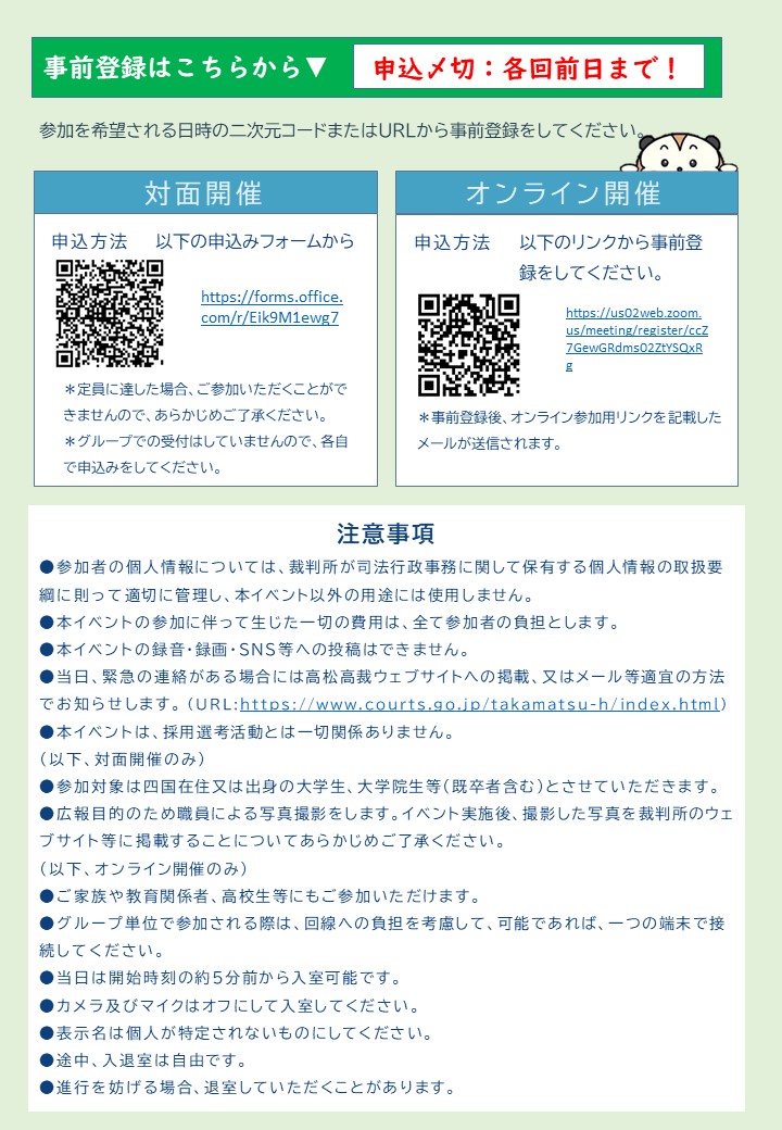 ※参加者の個人情報の取扱いについては、裁判所が司法行政事務に関して保有する個人情報の取扱要綱に則って適切に管理し、本ワークショップ以外の用途には使用しません。