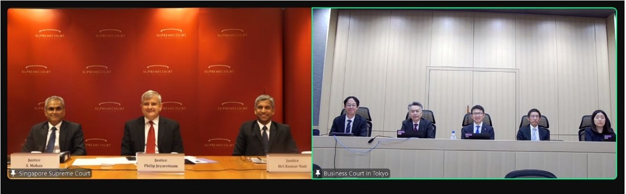 令和7年2月17日(月)、シンガポール国際商事裁判所(Singapore International Commercial Court)のジャヤラトナム所長(Justice Philip Jeyaretnam)、モハン判事(Justice S. Mohan)、ナイール判事(Justice Hri Kumar Nair)との間で、オンライン意見交換会を実施しました。